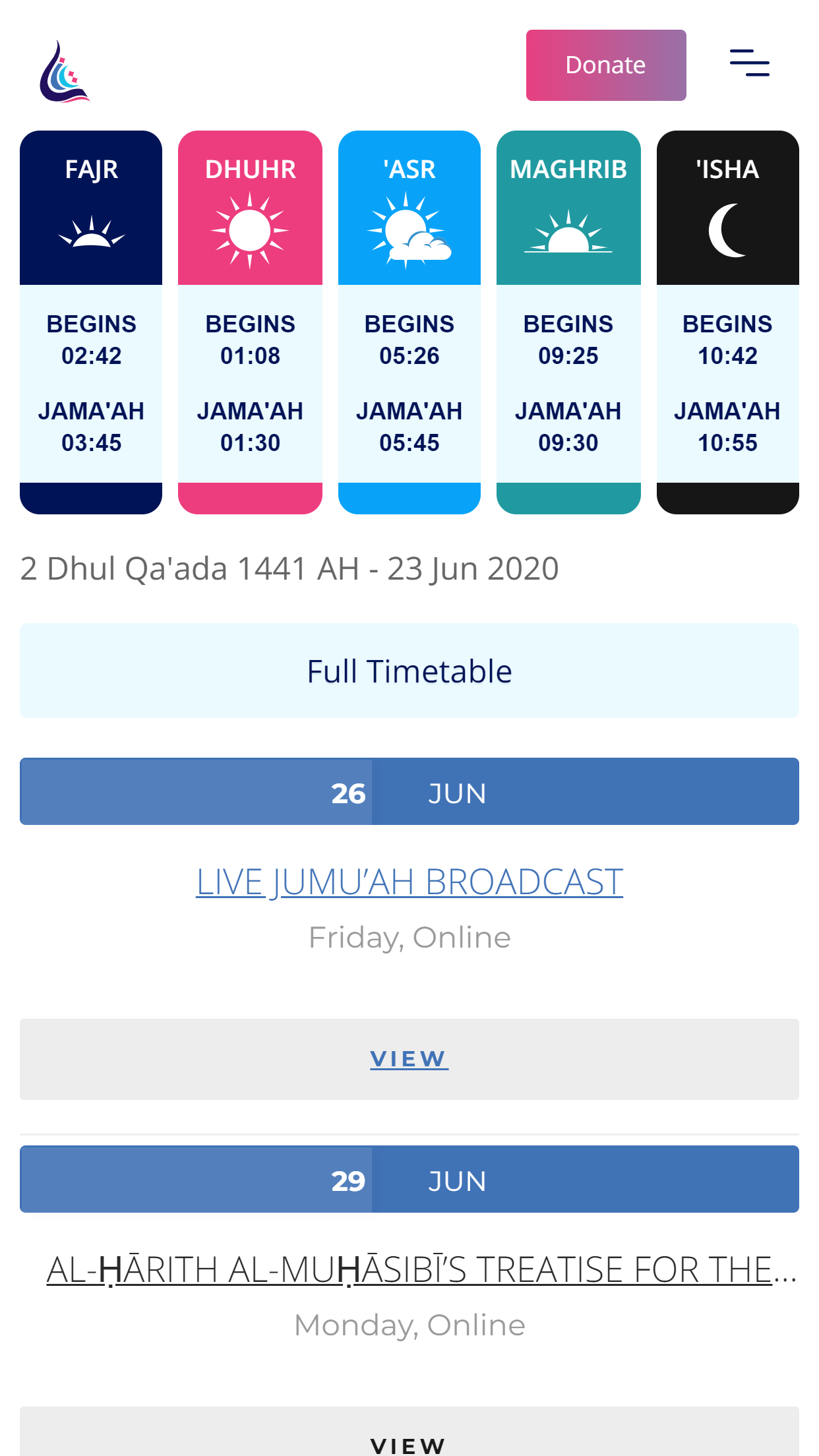 The result is a ultra-modern, thoughtfully laid-out website with dynamically loaded and UI editable prayer times, public and private calendars and quick access to documents and services that the community relies on every day.